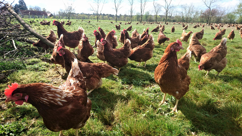 Notre laboratoire de découpe de viande nous permet de proposer mensuellement de la viande bovine en colis. Nous produisons également des œufs bio de Loué.